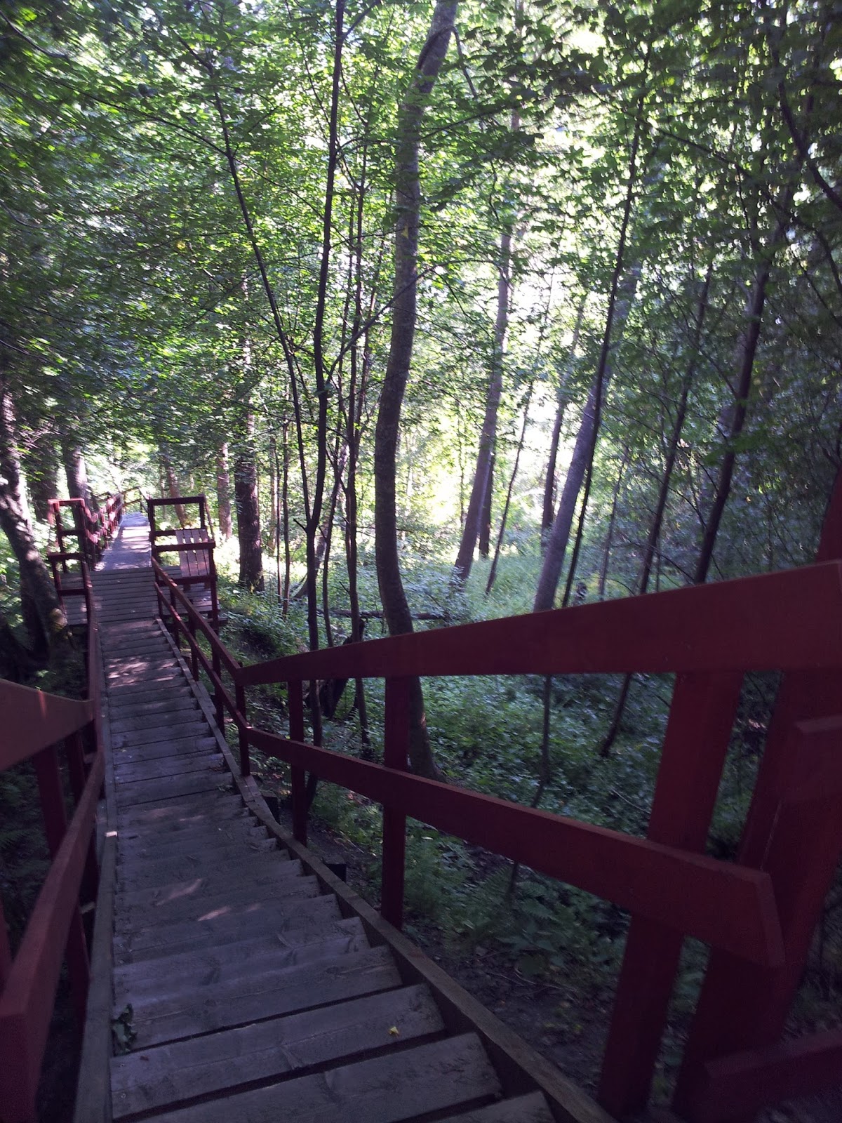Spångar och trappor tar en vidare upp och nedför branterna.